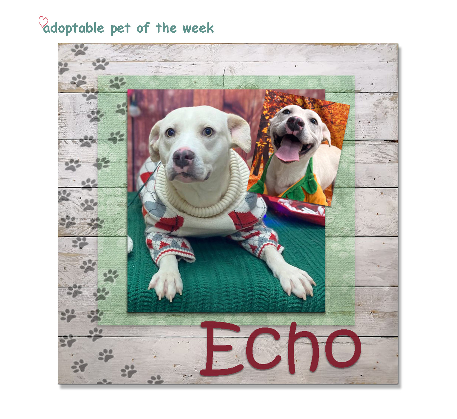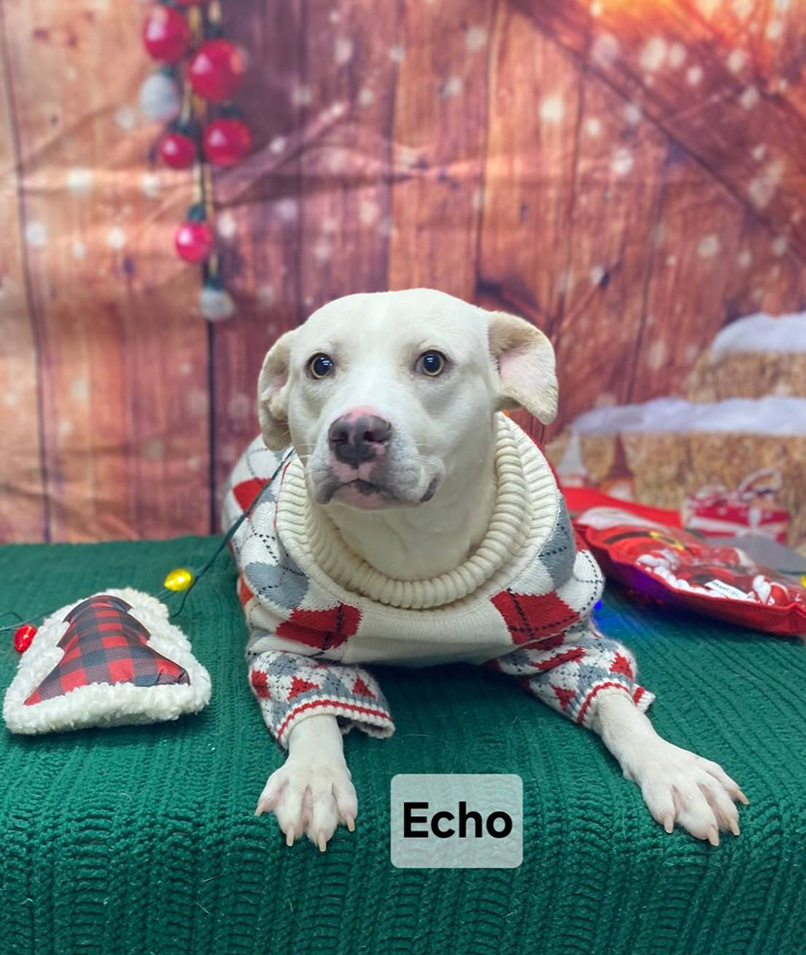 Echo is available for adoption at the Bulloch County Animal Shelter. If you are interested in meeting her in person, contact the shelter at 912-764-4529 to make an appointment, or stop by during open hours! Reminder: As part of a safety policy, visitors are required to wear closed toe shoes. Adoption fees are waived during the month of December.