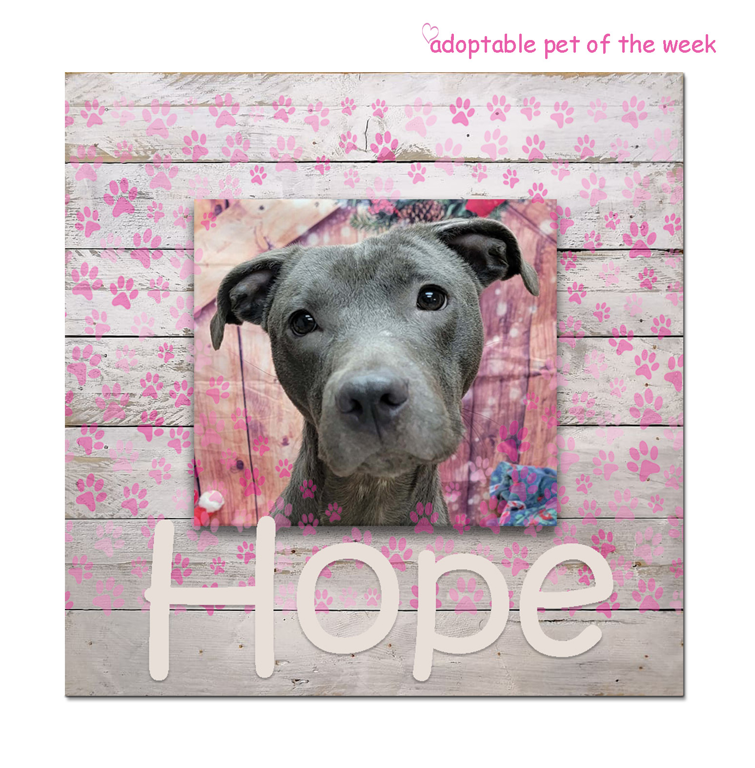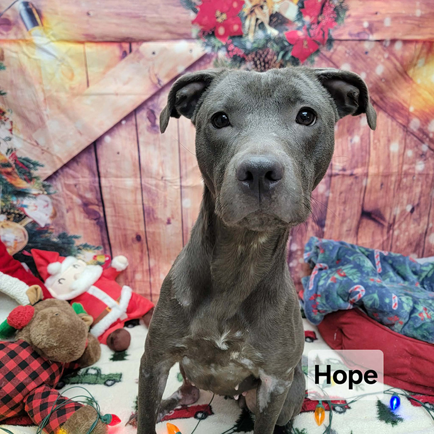 Hope is available for adoption at the Bulloch County Animal Shelter. If you are interested in meeting her in person, contact the shelter at 912-764-4529 to make an appointment, or stop by during open hours! Reminder: As part of a safety policy, visitors are required to wear closed toe shoes. Adoption fees are waived during the month of December.