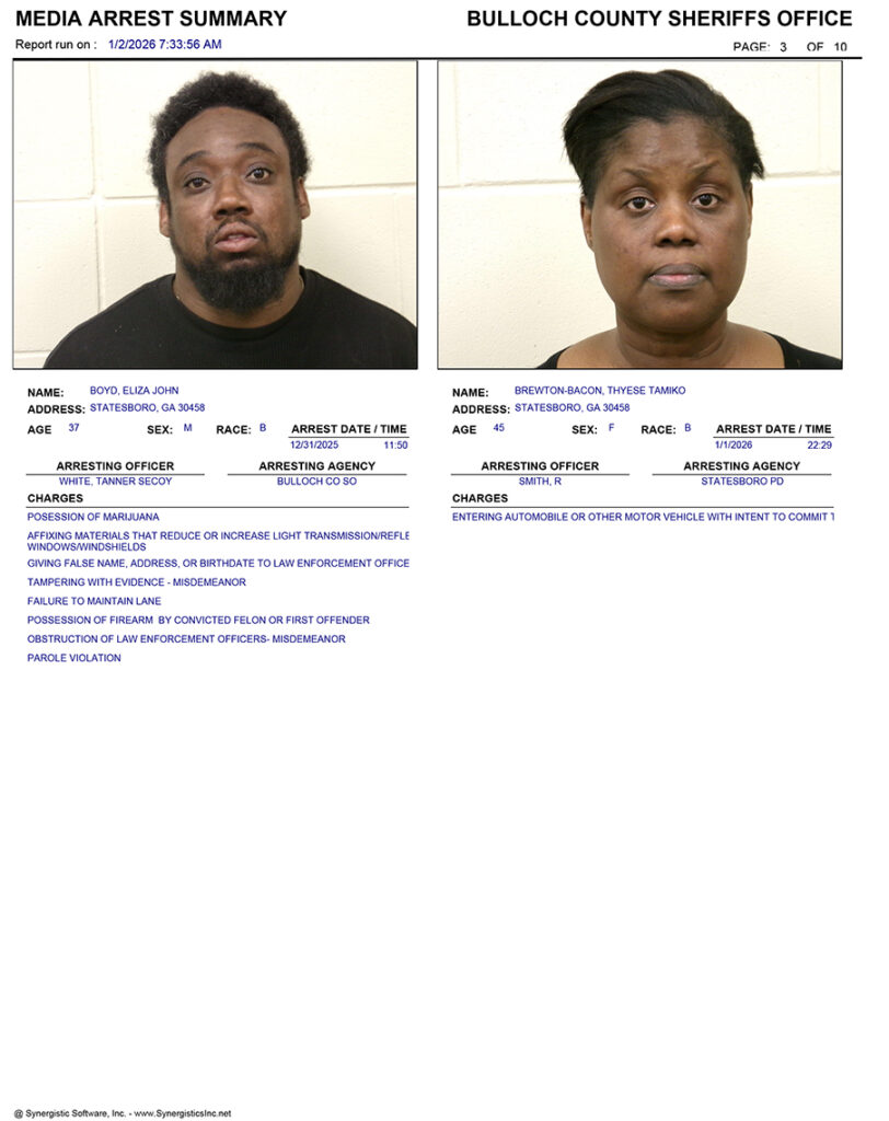 These records are matters of public information provided by the Bulloch County Sheriff’s Office. Booking reports are details of arrests only. All persons below are considered to be innocent unless proven otherwise in a court of law.