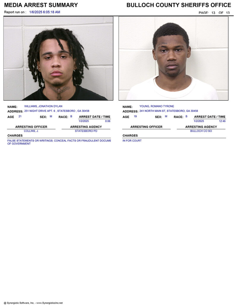 These records are matters of public information provided by the Bulloch County Sheriff’s Office. Booking reports are details of arrests only. All persons below are considered to be innocent unless proven otherwise in a court of law.