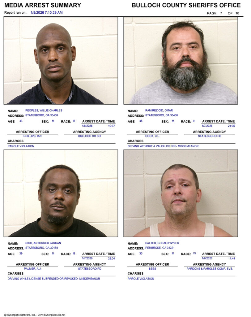 These records are matters of public information provided by the Bulloch County Sheriff’s Office. Booking reports are details of arrests only. All persons below are considered to be innocent unless proven otherwise in a court of law.