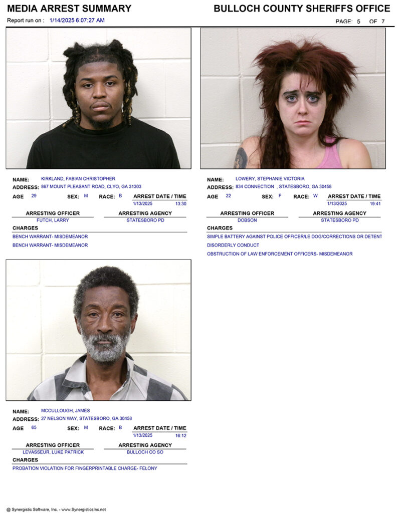 These records are matters of public information provided by the Bulloch County Sheriff’s Office. Booking reports are details of arrests only. All persons below are considered to be innocent unless proven otherwise in a court of law.