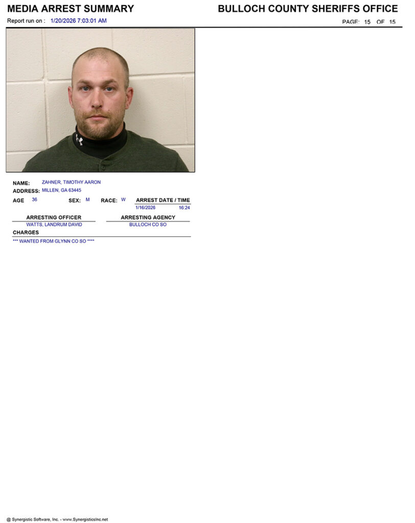 These records are matters of public information provided by the Bulloch County Sheriff’s Office. Booking reports are details of arrests only. All persons below are considered to be innocent unless proven otherwise in a court of law.