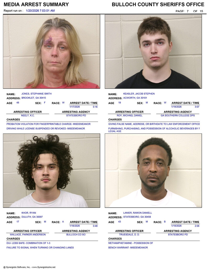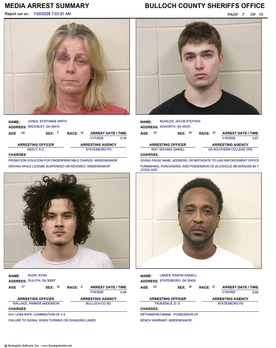 These records are matters of public information provided by the Bulloch County Sheriff’s Office. Booking reports are details of arrests only. All persons below are considered to be innocent unless proven otherwise in a court of law.