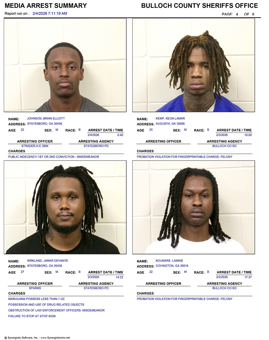 These records are matters of public information provided by the Bulloch County Sheriff’s Office. Booking reports are details of arrests only. All persons below are considered to be innocent unless proven otherwise in a court of law.