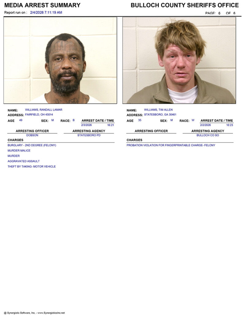 These records are matters of public information provided by the Bulloch County Sheriff’s Office. Booking reports are details of arrests only. All persons below are considered to be innocent unless proven otherwise in a court of law.