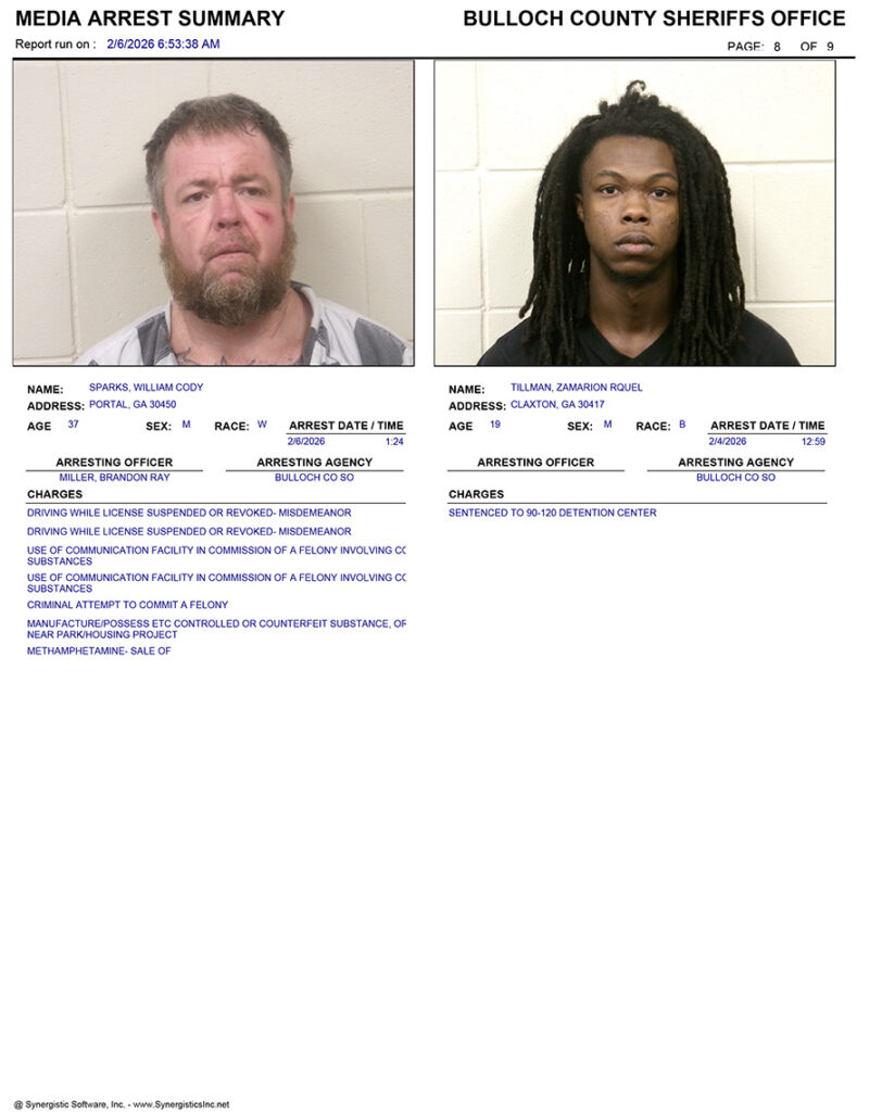 These records are matters of public information provided by the Bulloch County Sheriff’s Office. Booking reports are details of arrests only. All persons below are considered to be innocent unless proven otherwise in a court of law.