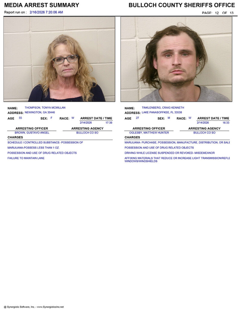 These records are matters of public information provided by the Bulloch County Sheriff’s Office. Booking reports are details of arrests only. All persons below are considered to be innocent unless proven otherwise in a court of law.