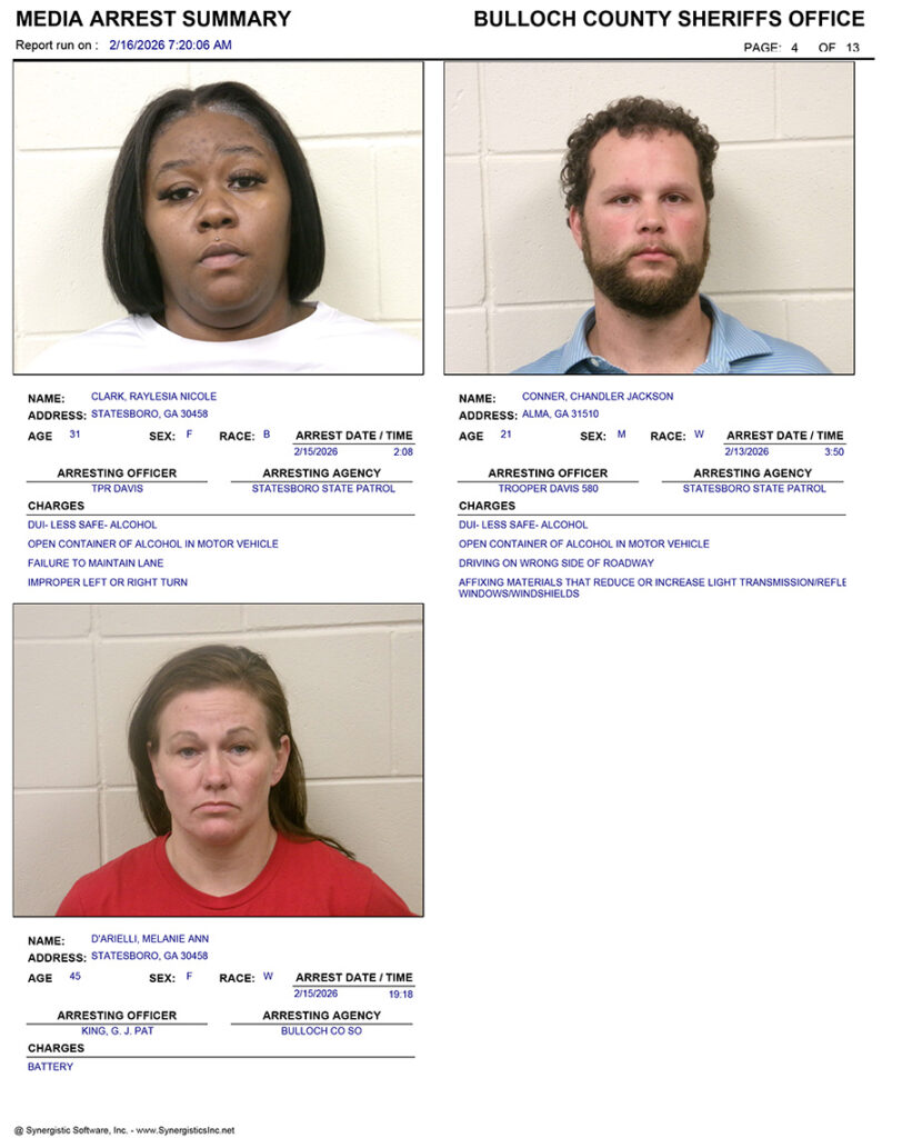 These records are matters of public information provided by the Bulloch County Sheriff’s Office. Booking reports are details of arrests only. All persons below are considered to be innocent unless proven otherwise in a court of law.