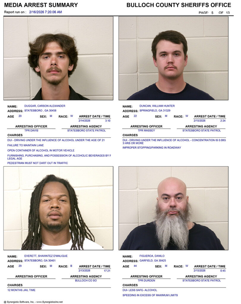 These records are matters of public information provided by the Bulloch County Sheriff’s Office. Booking reports are details of arrests only. All persons below are considered to be innocent unless proven otherwise in a court of law.