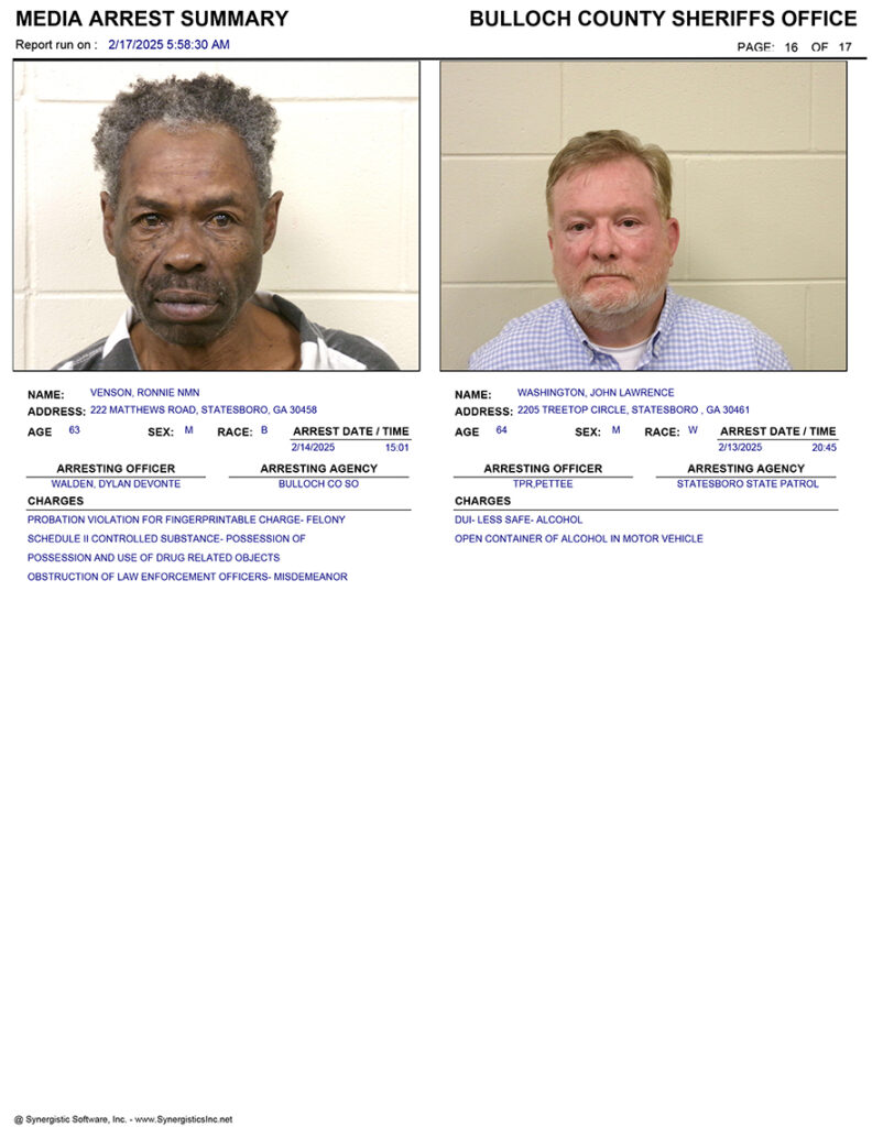 These records are matters of public information provided by the Bulloch County Sheriff’s Office. Booking reports are details of arrests only. All persons below are considered to be innocent unless proven otherwise in a court of law.