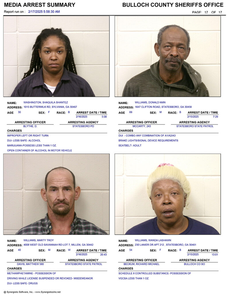These records are matters of public information provided by the Bulloch County Sheriff’s Office. Booking reports are details of arrests only. All persons below are considered to be innocent unless proven otherwise in a court of law.
