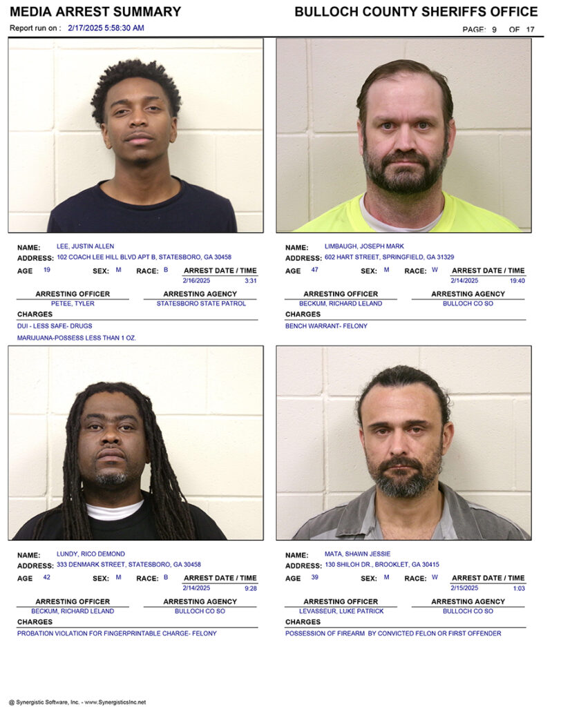 These records are matters of public information provided by the Bulloch County Sheriff’s Office. Booking reports are details of arrests only. All persons below are considered to be innocent unless proven otherwise in a court of law.