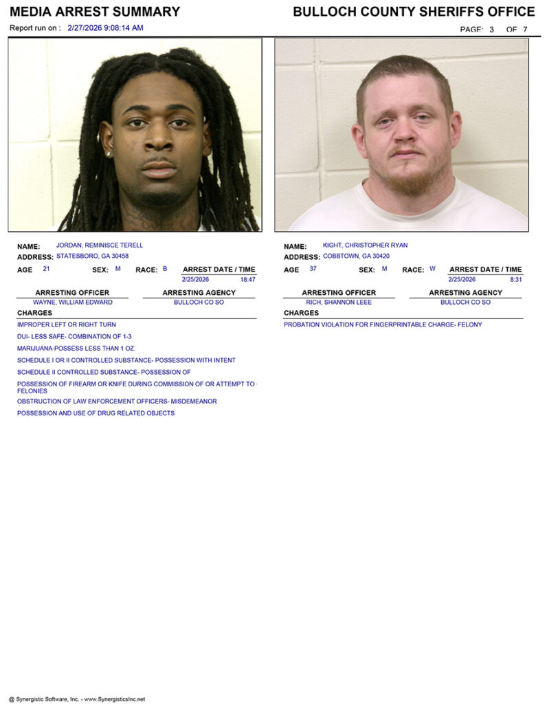 These records are matters of public information provided by the Bulloch County Sheriff’s Office. Booking reports are details of arrests only. All persons below are considered to be innocent unless proven otherwise in a court of law.
