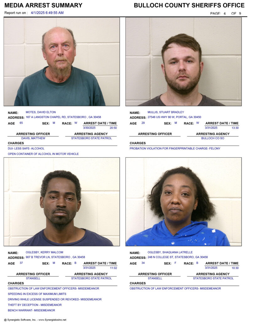 These records are matters of public information provided by the Bulloch County Sheriff’s Office. Booking reports are details of arrests only. All persons below are considered to be innocent unless proven otherwise in a court of law.