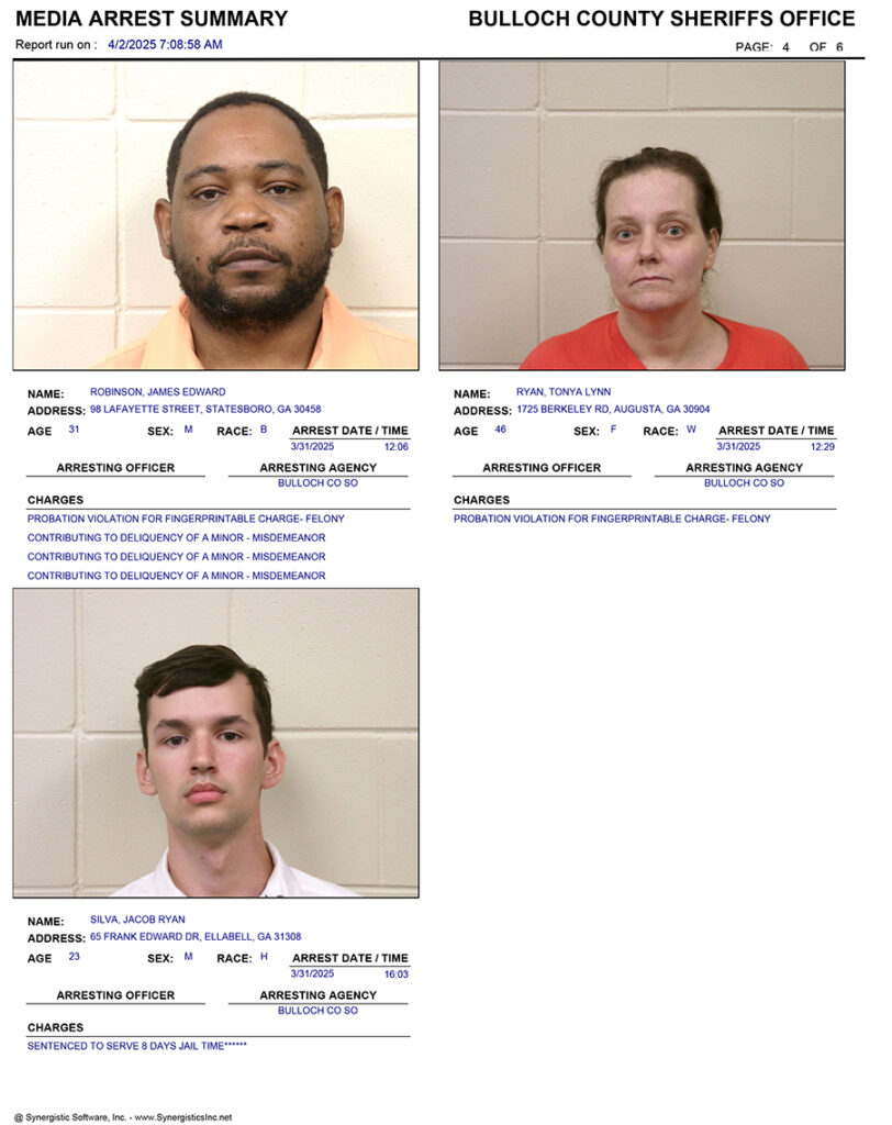 These records are matters of public information provided by the Bulloch County Sheriff’s Office. Booking reports are details of arrests only. All persons below are considered to be innocent unless proven otherwise in a court of law.