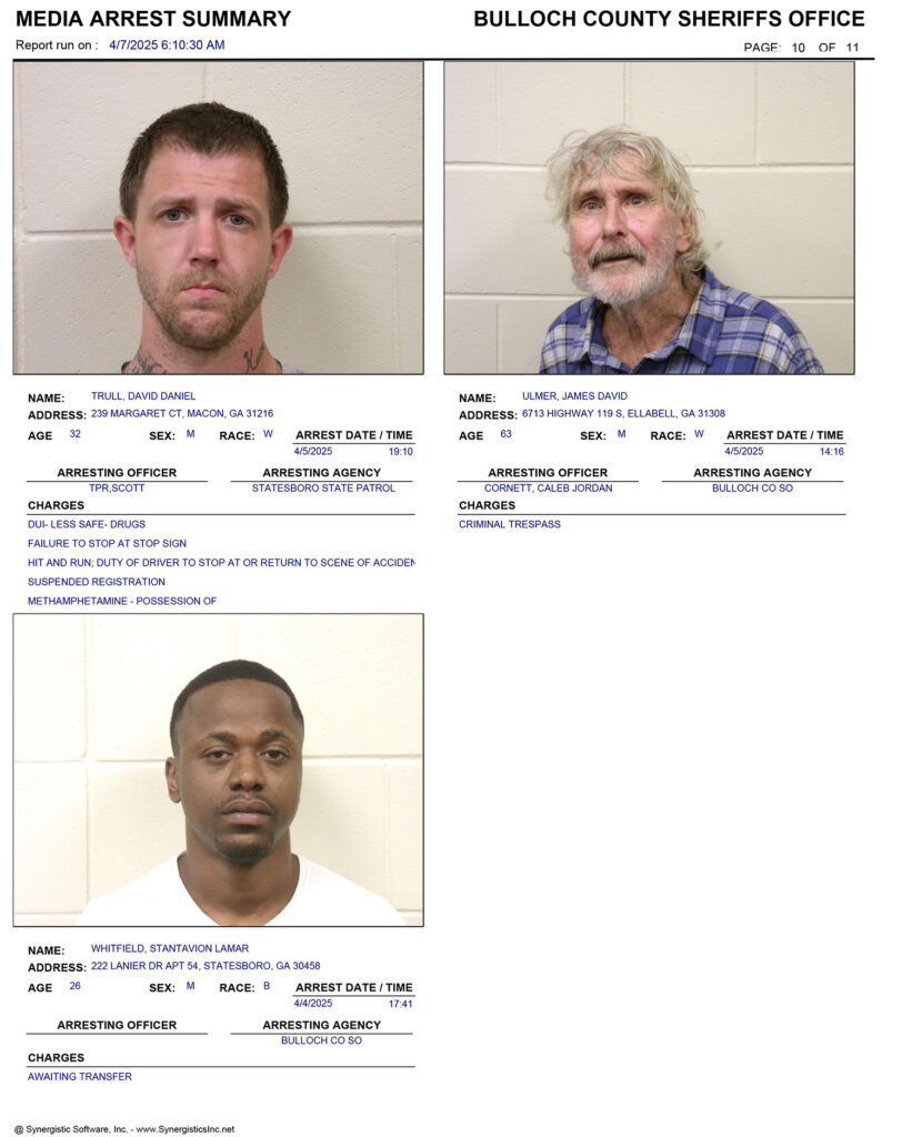 These records are matters of public information provided by the Bulloch County Sheriff’s Office. Booking reports are details of arrests only. All persons below are considered to be innocent unless proven otherwise in a court of law.