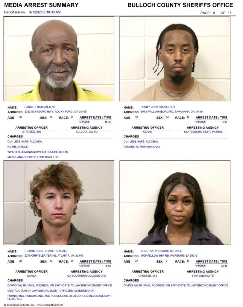 These records are matters of public information provided by the Bulloch County Sheriff’s Office. Booking reports are details of arrests only. All persons below are considered to be innocent unless proven otherwise in a court of law.