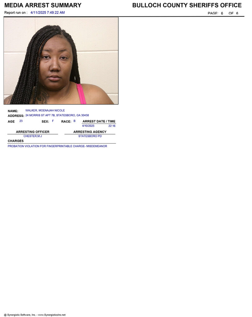These records are matters of public information provided by the Bulloch County Sheriff’s Office. Booking reports are details of arrests only. All persons below are considered to be innocent unless proven otherwise in a court of law.