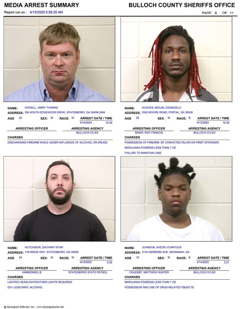 These records are matters of public information provided by the Bulloch County Sheriff’s Office. Booking reports are details of arrests only. All persons below are considered to be innocent unless proven otherwise in a court of law.