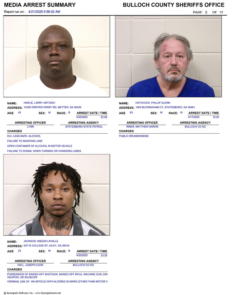 These records are matters of public information provided by the Bulloch County Sheriff’s Office. Booking reports are details of arrests only. All persons below are considered to be innocent unless proven otherwise in a court of law.