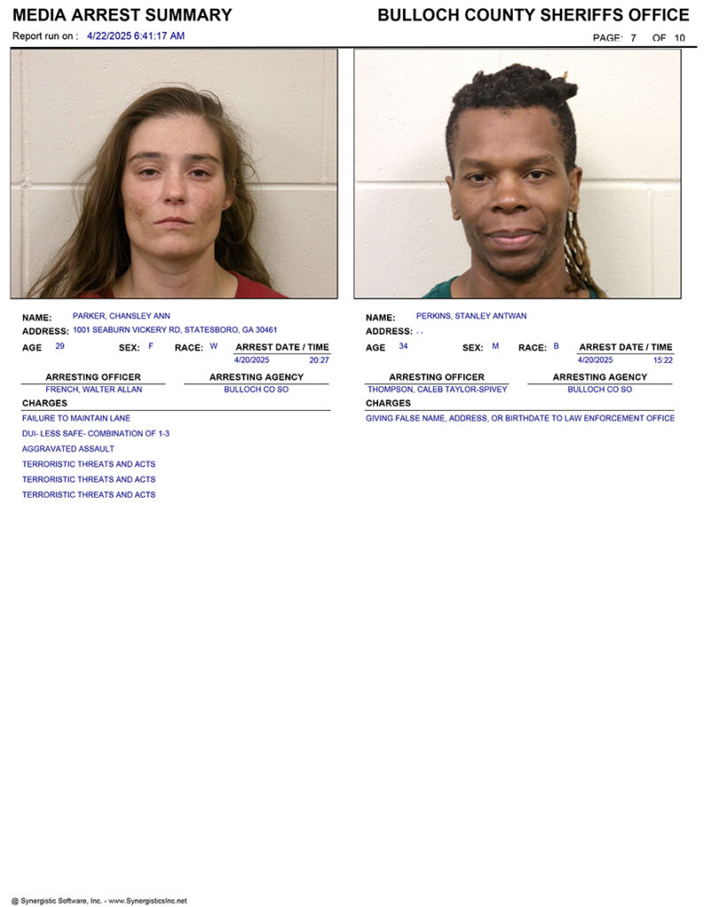 These records are matters of public information provided by the Bulloch County Sheriff’s Office. Booking reports are details of arrests only. All persons below are considered to be innocent unless proven otherwise in a court of law.