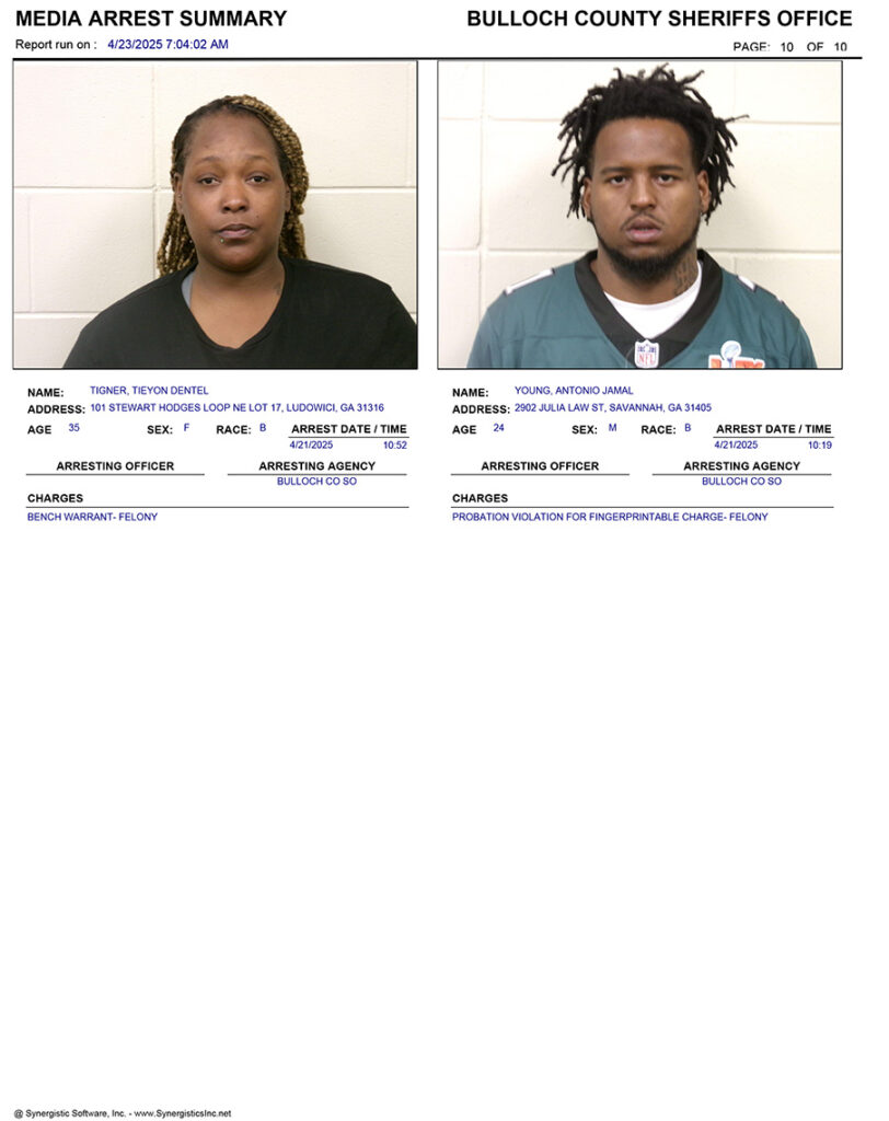 These records are matters of public information provided by the Bulloch County Sheriff’s Office. Booking reports are details of arrests only. All persons below are considered to be innocent unless proven otherwise in a court of law.