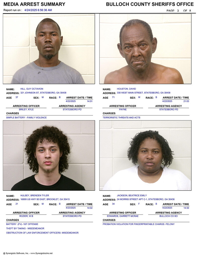 These records are matters of public information provided by the Bulloch County Sheriff’s Office. Booking reports are details of arrests only. All persons below are considered to be innocent unless proven otherwise in a court of law.