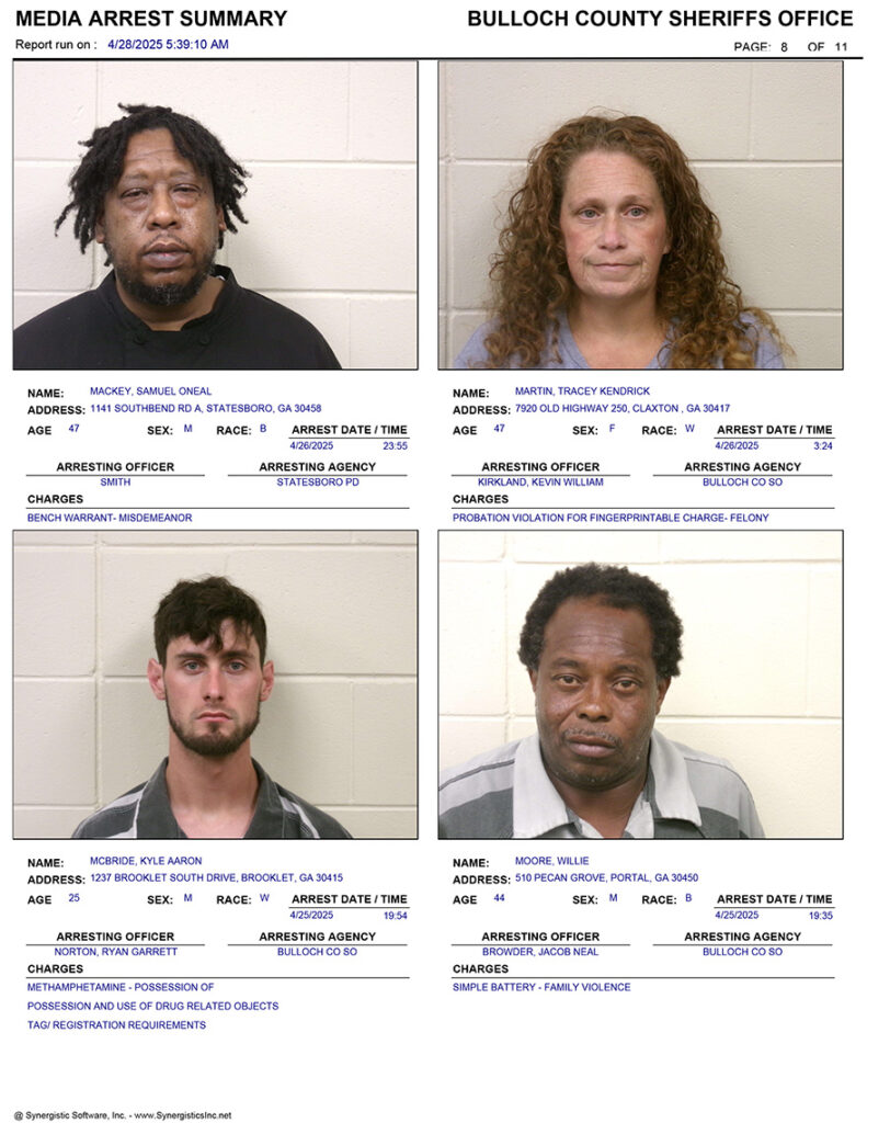 These records are matters of public information provided by the Bulloch County Sheriff’s Office. Booking reports are details of arrests only. All persons below are considered to be innocent unless proven otherwise in a court of law.