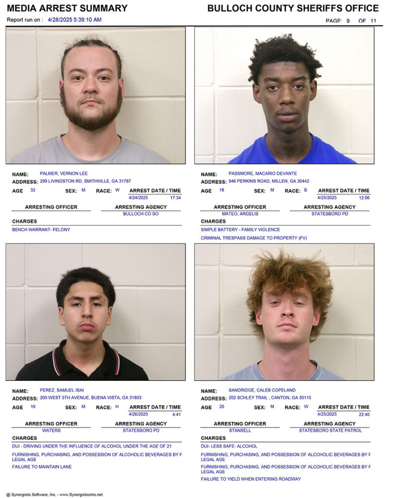 These records are matters of public information provided by the Bulloch County Sheriff’s Office. Booking reports are details of arrests only. All persons below are considered to be innocent unless proven otherwise in a court of law.