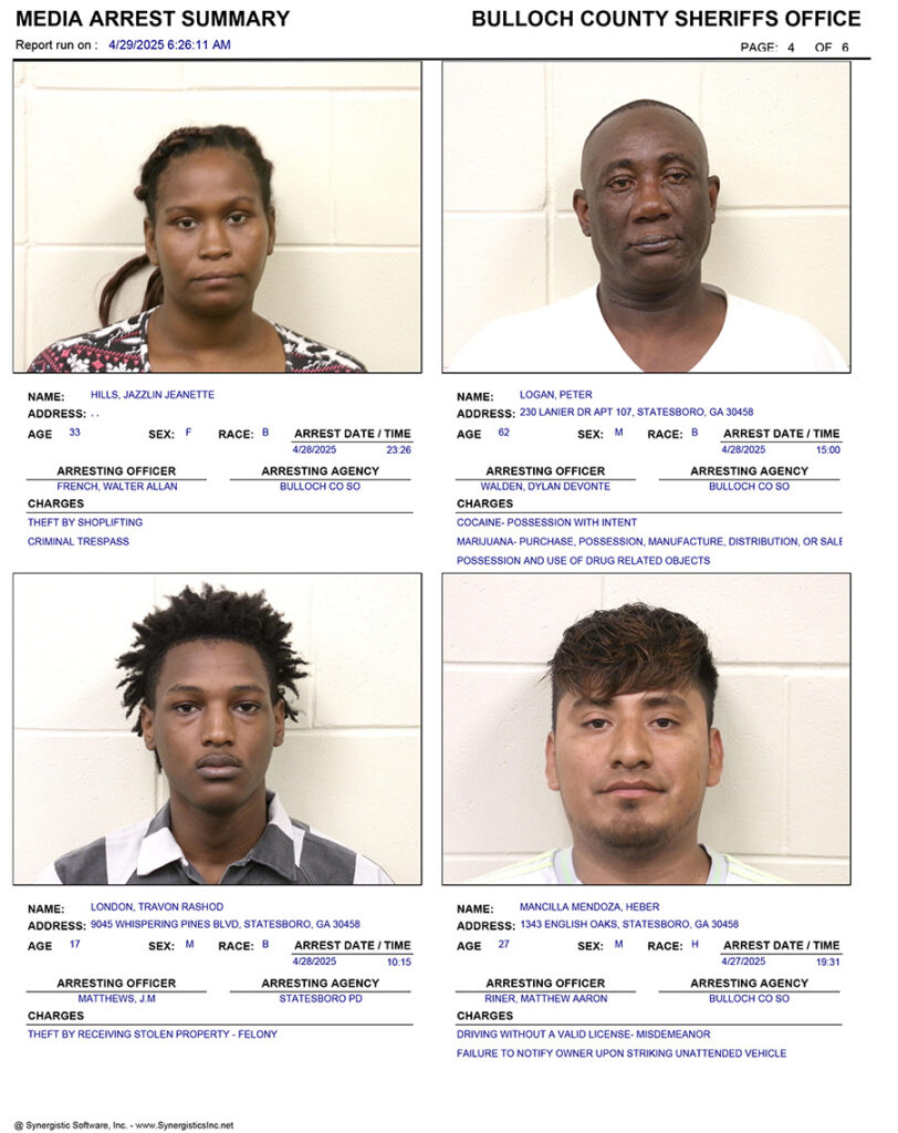 These records are matters of public information provided by the Bulloch County Sheriff’s Office. Booking reports are details of arrests only. All persons below are considered to be innocent unless proven otherwise in a court of law.
