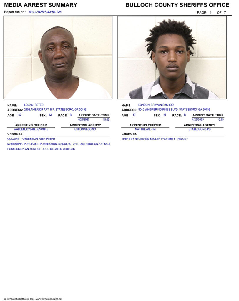 These records are matters of public information provided by the Bulloch County Sheriff’s Office. Booking reports are details of arrests only. All persons below are considered to be innocent unless proven otherwise in a court of law.