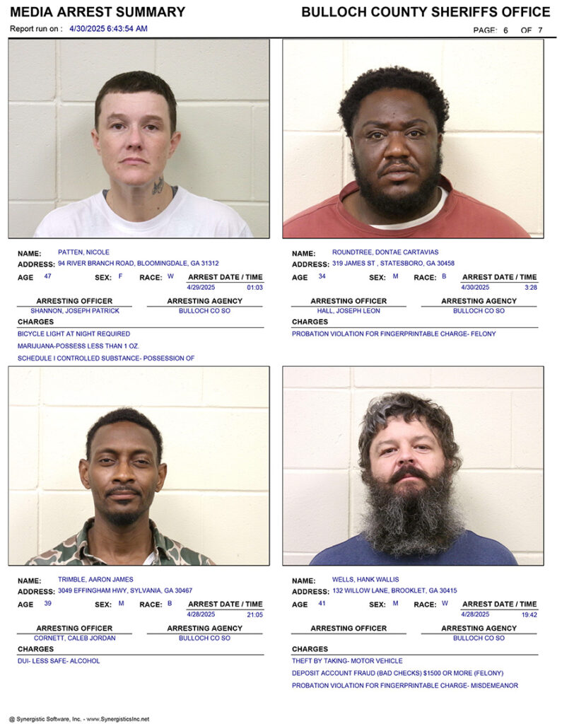 These records are matters of public information provided by the Bulloch County Sheriff’s Office. Booking reports are details of arrests only. All persons below are considered to be innocent unless proven otherwise in a court of law.