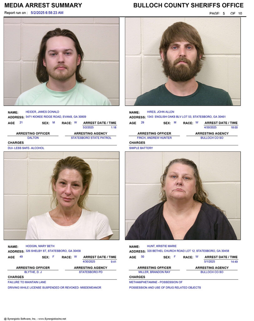 These records are matters of public information provided by the Bulloch County Sheriff’s Office. Booking reports are details of arrests only. All persons below are considered to be innocent unless proven otherwise in a court of law.