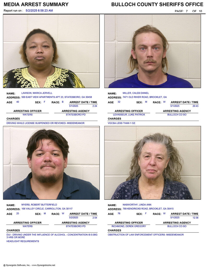 These records are matters of public information provided by the Bulloch County Sheriff’s Office. Booking reports are details of arrests only. All persons below are considered to be innocent unless proven otherwise in a court of law.
