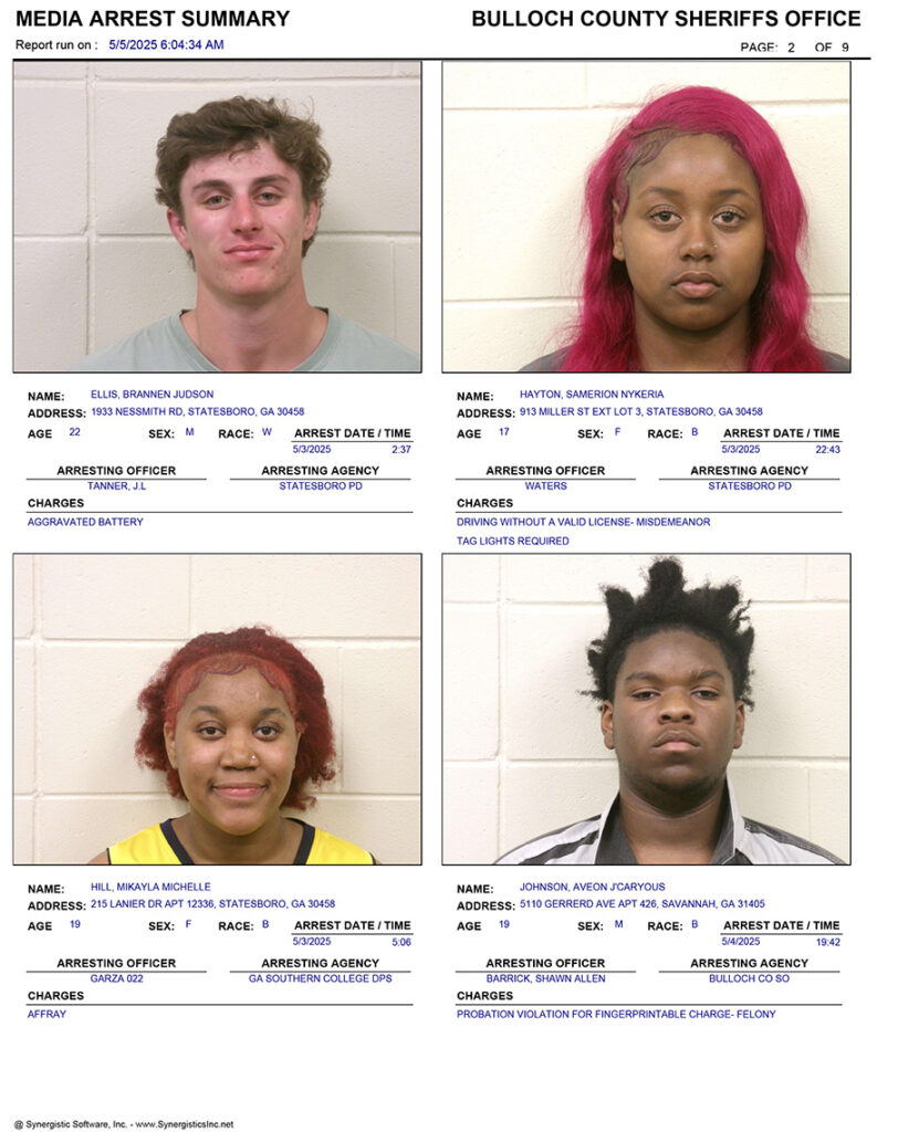 These records are matters of public information provided by the Bulloch County Sheriff’s Office. Booking reports are details of arrests only. All persons below are considered to be innocent unless proven otherwise in a court of law.