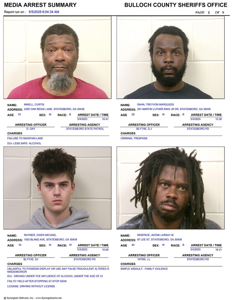 These records are matters of public information provided by the Bulloch County Sheriff’s Office. Booking reports are details of arrests only. All persons below are considered to be innocent unless proven otherwise in a court of law.
