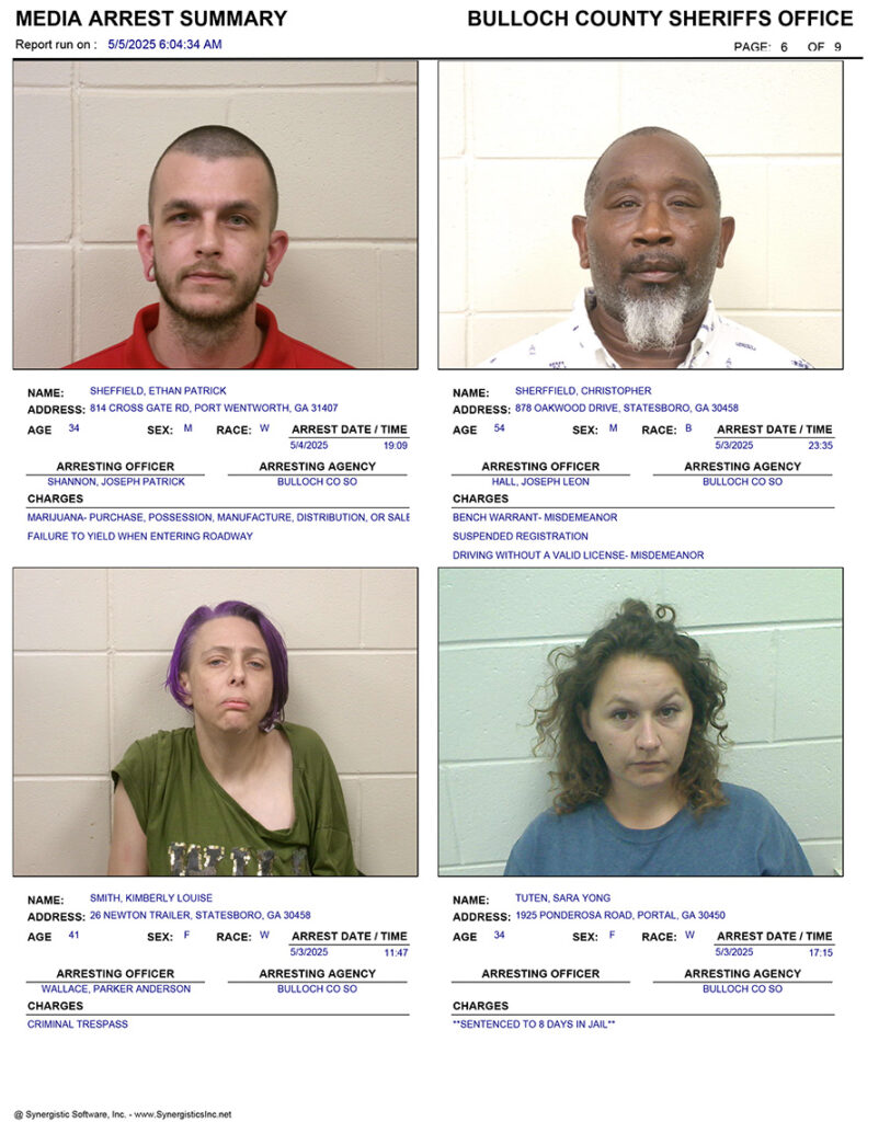 These records are matters of public information provided by the Bulloch County Sheriff’s Office. Booking reports are details of arrests only. All persons below are considered to be innocent unless proven otherwise in a court of law.