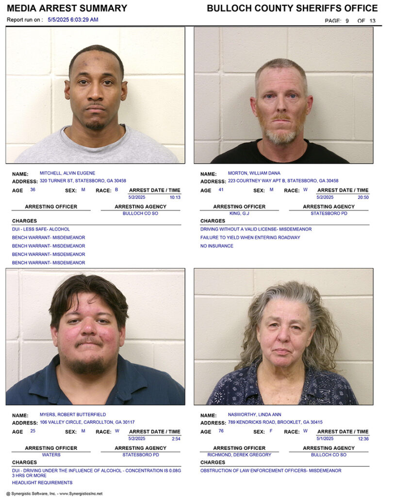 These records are matters of public information provided by the Bulloch County Sheriff’s Office. Booking reports are details of arrests only. All persons below are considered to be innocent unless proven otherwise in a court of law.