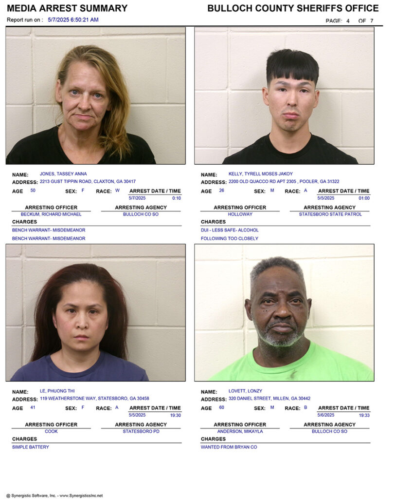 These records are matters of public information provided by the Bulloch County Sheriff’s Office. Booking reports are details of arrests only. All persons below are considered to be innocent unless proven otherwise in a court of law.