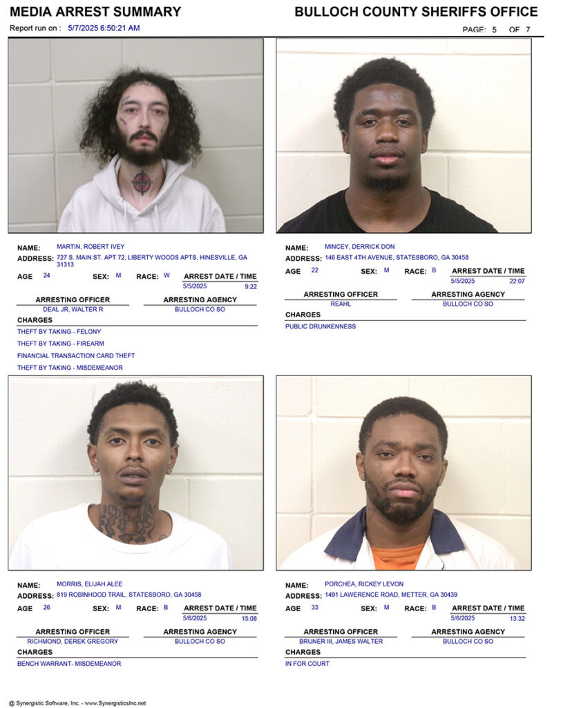 These records are matters of public information provided by the Bulloch County Sheriff’s Office. Booking reports are details of arrests only. All persons below are considered to be innocent unless proven otherwise in a court of law.