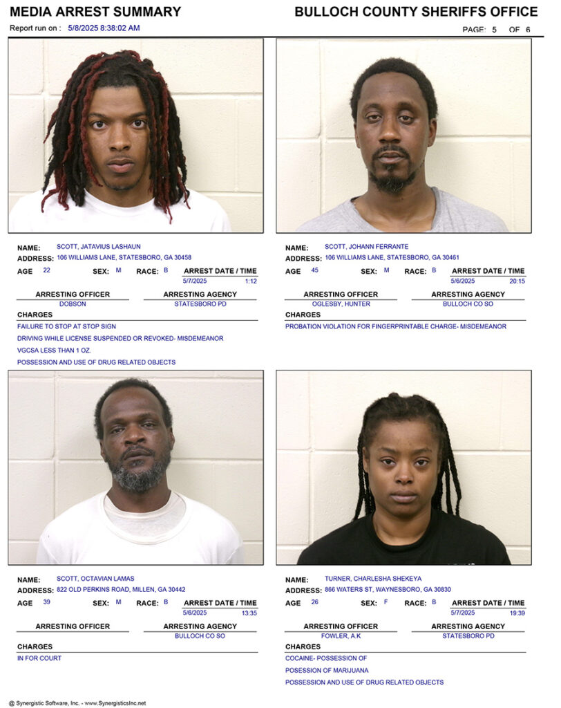 These records are matters of public information provided by the Bulloch County Sheriff’s Office. Booking reports are details of arrests only. All persons below are considered to be innocent unless proven otherwise in a court of law.