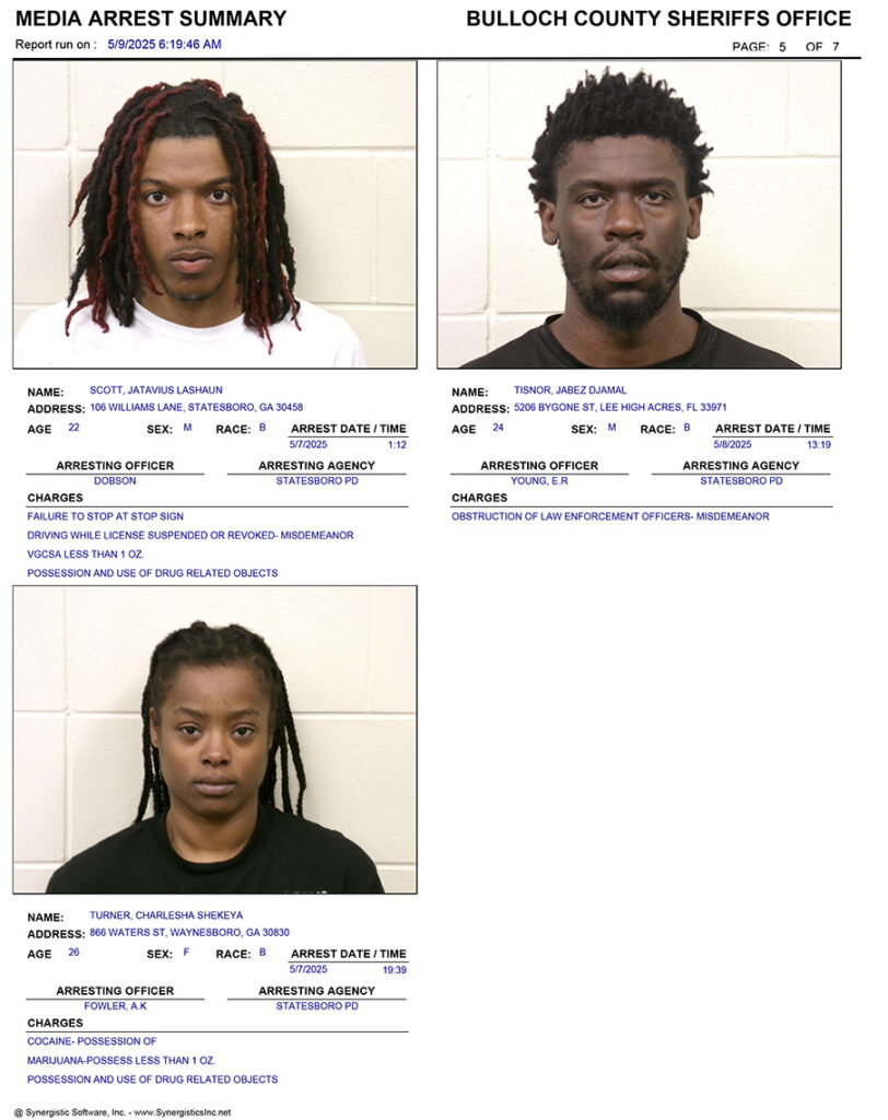 These records are matters of public information provided by the Bulloch County Sheriff’s Office. Booking reports are details of arrests only. All persons below are considered to be innocent unless proven otherwise in a court of law.
