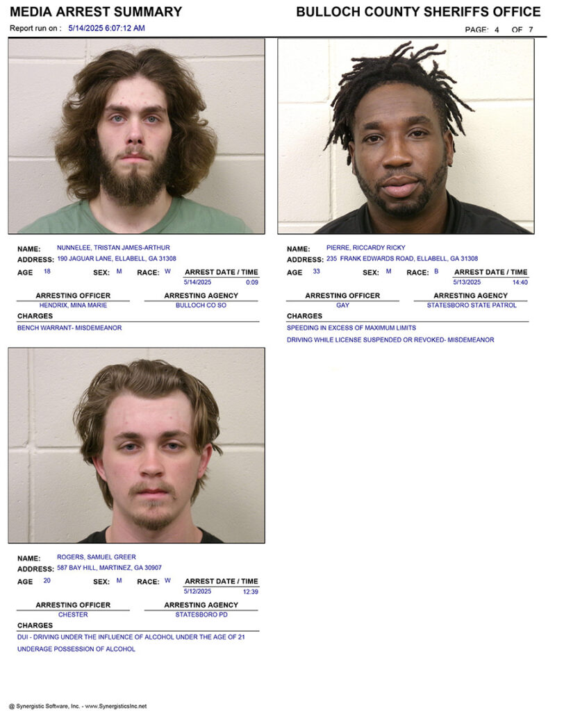 These records are matters of public information provided by the Bulloch County Sheriff’s Office. Booking reports are details of arrests only. All persons below are considered to be innocent unless proven otherwise in a court of law.