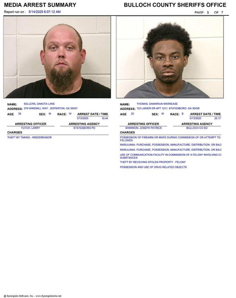 These records are matters of public information provided by the Bulloch County Sheriff’s Office. Booking reports are details of arrests only. All persons below are considered to be innocent unless proven otherwise in a court of law.