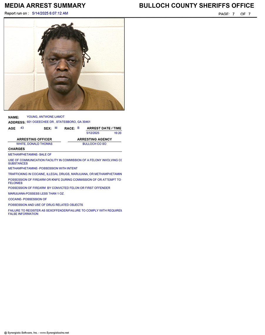 These records are matters of public information provided by the Bulloch County Sheriff’s Office. Booking reports are details of arrests only. All persons below are considered to be innocent unless proven otherwise in a court of law.
