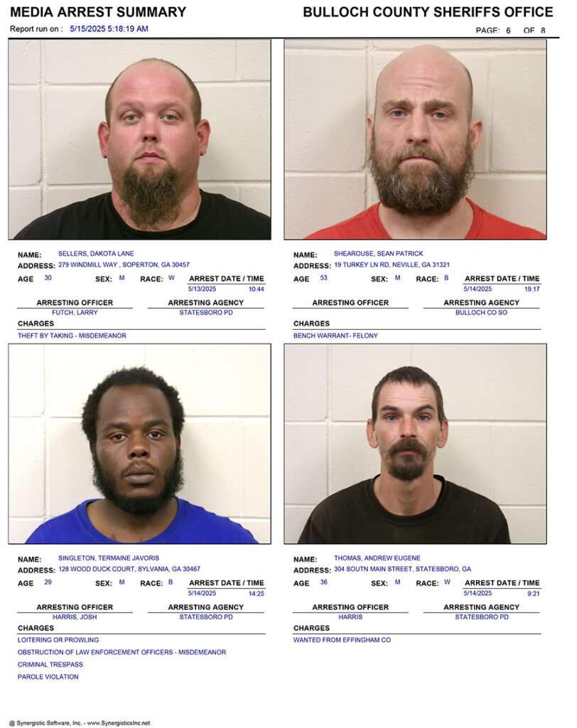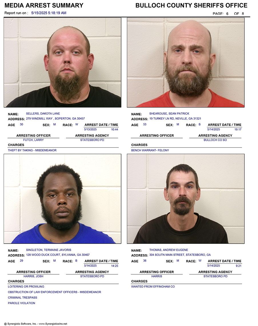 These records are matters of public information provided by the Bulloch County Sheriff’s Office. Booking reports are details of arrests only. All persons below are considered to be innocent unless proven otherwise in a court of law.