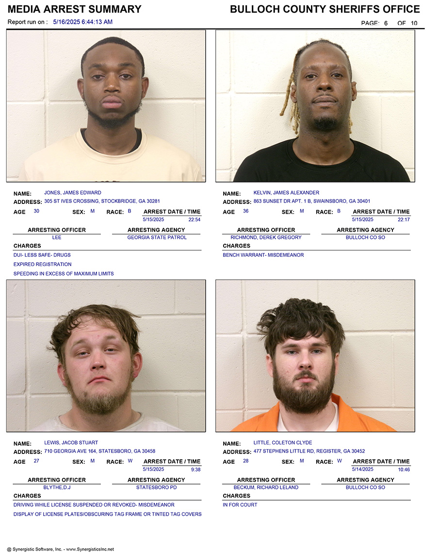 These records are matters of public information provided by the Bulloch County Sheriff’s Office. Booking reports are details of arrests only. All persons below are considered to be innocent unless proven otherwise in a court of law.