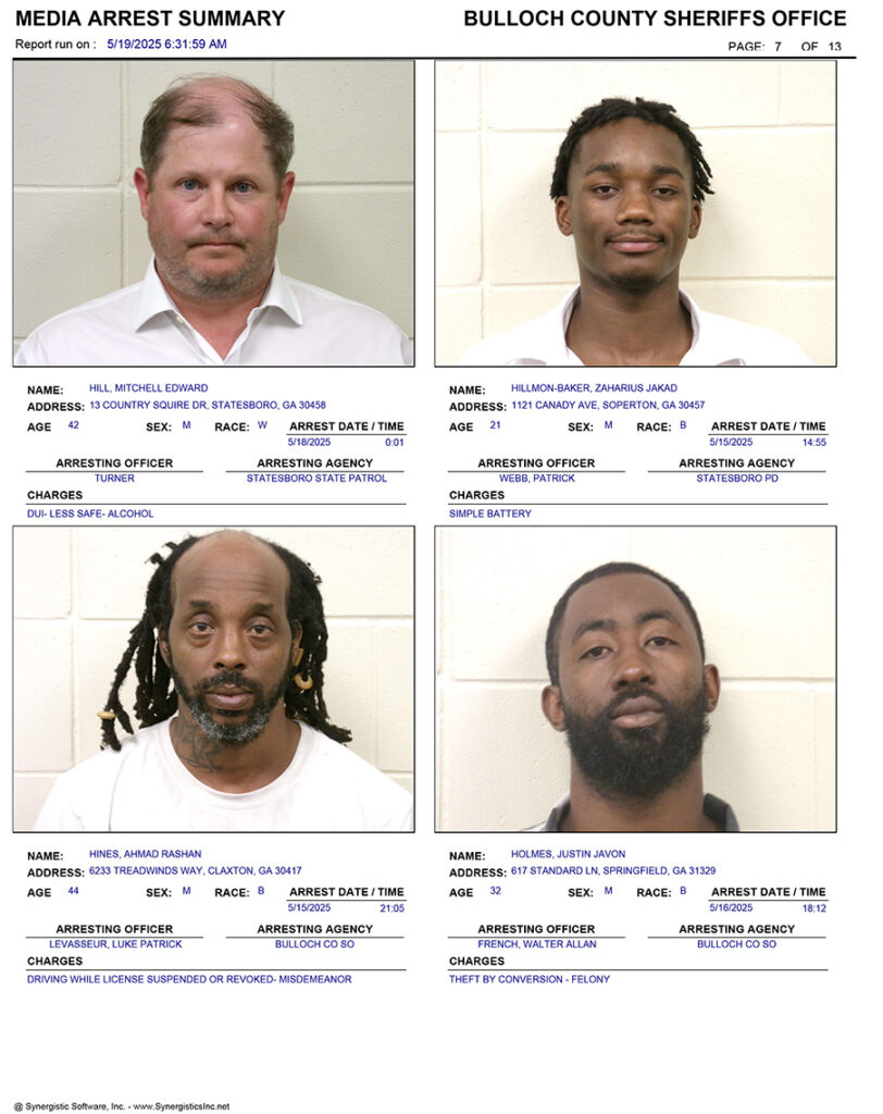 These records are matters of public information provided by the Bulloch County Sheriff’s Office. Booking reports are details of arrests only. All persons below are considered to be innocent unless proven otherwise in a court of law.
