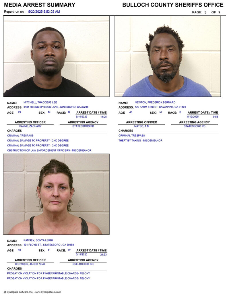 These records are matters of public information provided by the Bulloch County Sheriff’s Office. Booking reports are details of arrests only. All persons below are considered to be innocent unless proven otherwise in a court of law.